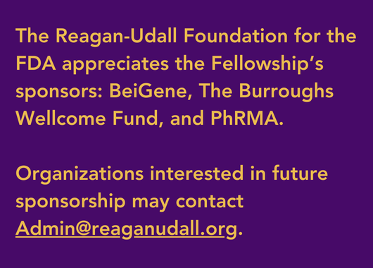 The 2025/2026 Fellowship in Regulatory Science & Innovation is supported by BeiGene, Burroughs Wellcome Fund, and PhRMA.